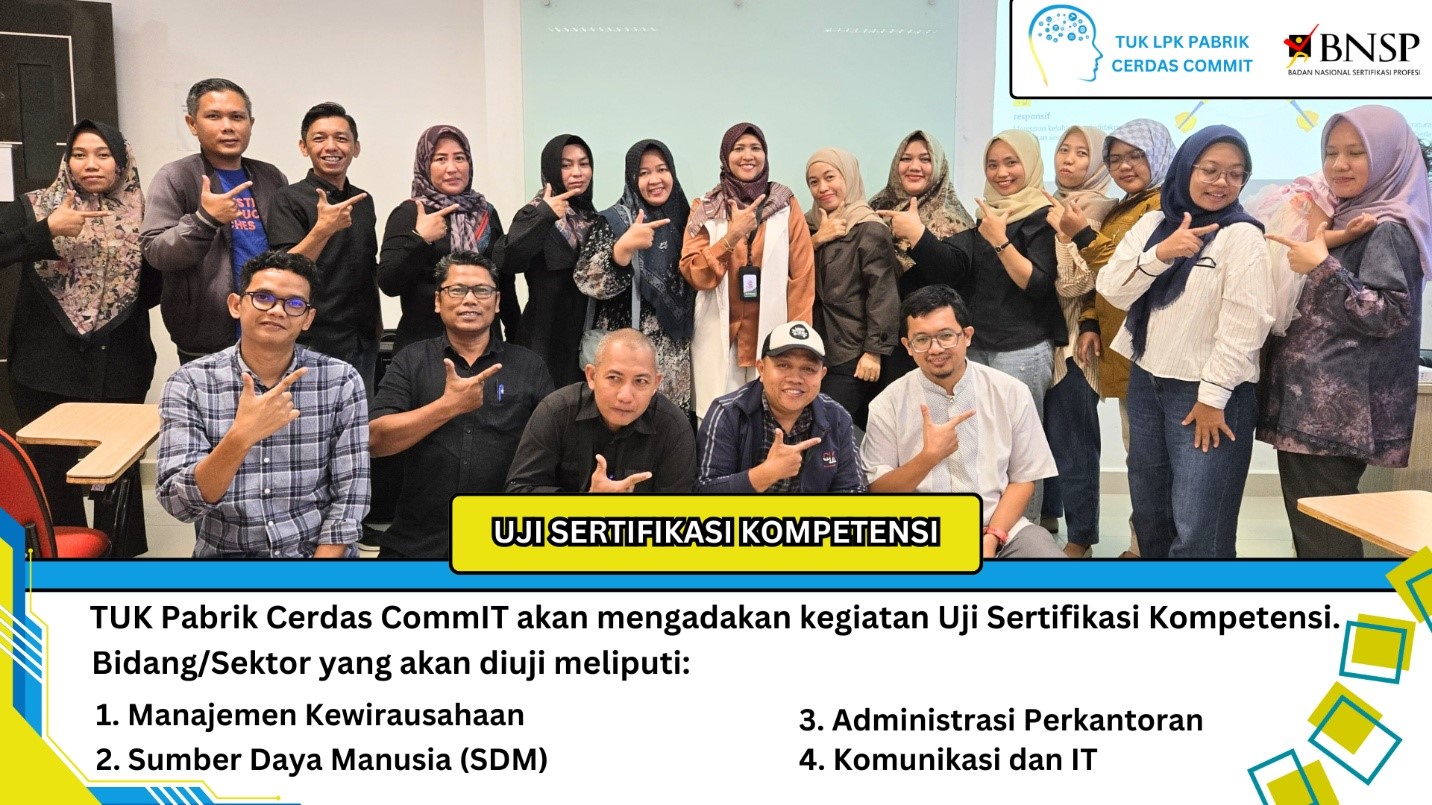 Lembaga Pelatihan Kerja Pabrik Cerdas Commit merupakan sebuah lembaga yang bergerak di bidang ekonomi kreatif yang spesifik pada komunikasi dan IT serta melakukan sertifikasi BNSP. Menghadapi tantangan era revolusi industri dengan meningkatnya kebutuhan sumber daya manusia dibidang komunikasi teknologi dan Teknik Informatika maka sudah saatnya Riau sendiri memiliki sebuah lembaga yang dapat menghasilkan SDM kreatif dan inovatif. Founder Pabrik Cerdas Commit yaitu Anita Mediana SE., MM dan Nita Rimayanti.S,Sos., M.Comm dengan menggandeng tenaga ahli baik skala Provinsi Riau maupun Nasional. Pabrik Cerdas Commit atau yang disingkat dengan PCC, selain bergerak dibidang pelatihan kerja juga pembinaan terhadap berbagai lembaga usaha dan UMKM yang selaras dengan visi dan misi PCC.